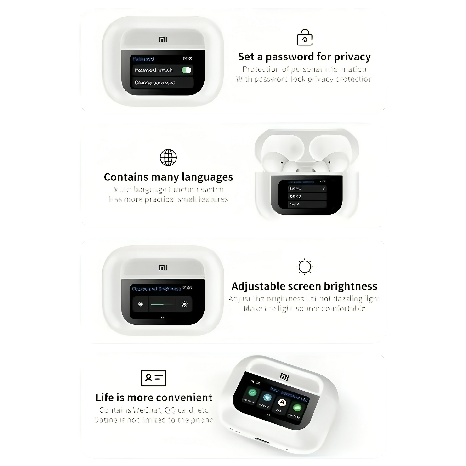 Excellent product, real noise cancellation, comfortable, good material, the screen works like that of a smartwatch, the sound quality could be slightly improved, but the price-quality ratio is excellent.